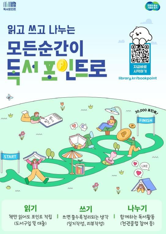 경기도와 경기도평생교육진흥원은 평생 독서 프로젝트 ‘천권으로’ 중 하나로 전국 지자체 최초 ‘독서 포인트 제도’를 도입해 ▲도서 구매 ▲도서 대출 ▲독서 일지 작성 ▲리뷰 공유 등 독서 활동에 포인트를 지급하고 있다. 적립된 포인트는 매월 25일 지역화폐로 전환되며, 지역 서점에서 도서 구매 시 사용할 수 있다. 올해 하반기 적립 가능 포인트는 인당 최대 3만 원이다.