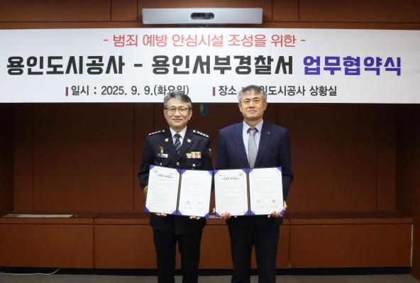 [경기경제신문] 용인도시공사는 9일 용인서부경찰서와 범죄예방 안심시설 조성을 위한 상호협력 업무협약을 체결했다고 밝혔다.