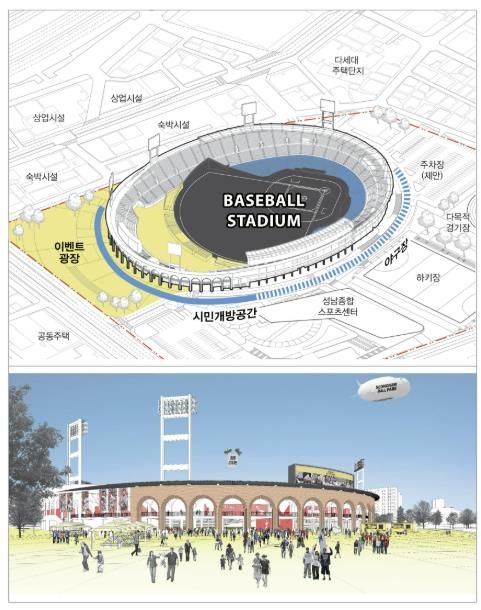 [경기경제신문] 2028년 프로야구 시대를 열 성남시 야구 전용구장의 밑그림이 나왔다. 성남시는 프로야구 개최가 가능한 야구 전용구장 조성을 위해 진행한 성남종합운동장 주경기장 리모델링 설계 공모에서 ㈜에스샵건축사사무소의 설계안을 당선작으로 선정했다고 11일 밝혔다.