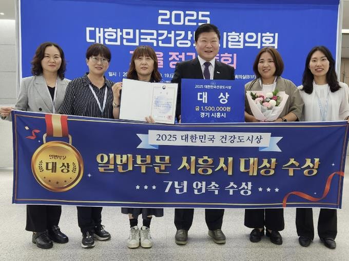 [경기경제신문] 시흥시는 지난 9월 18일 안동국제컨벤션센터에서 열린 2025 대한민국건강도시협의회 가을 정기총회에서 ‘2025 대한민국건강도시상’ 일반 부문 대상을 받았다. 이로써 시흥시는 2019년부터 7년 연속 수상의 성과를 이어가게 됐다.