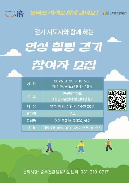 참여를 원하는 주민은 홍보물의 정보무늬(큐알코드)를 통해 신청하거나 중부건강생활지원센터로 전화해서 신청하면 된다. 참가자는 편안한 운동복과 운동화를 착용하면 된다.