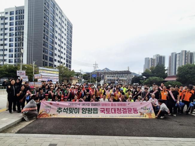 [경기경제신문] 양평군 양평읍은 22일 오전 7시, ‘2025년 대한민국 새 단장 캠페인’과 함께 깨끗하고 쾌적한 양평읍 조성을 위해 추석맞이 국토대청결운동을 실시했다.