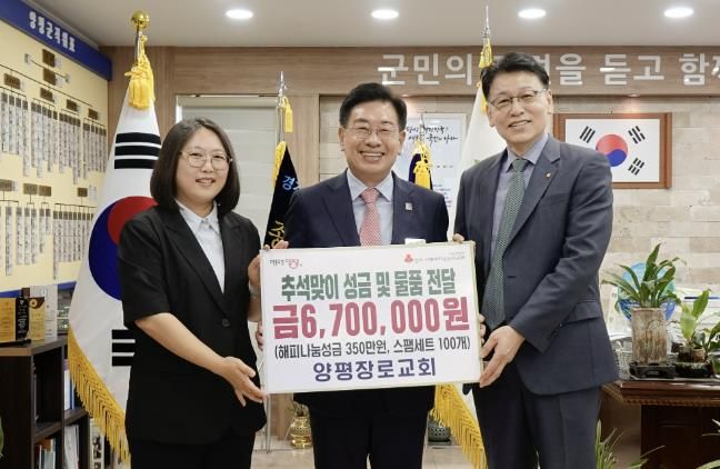 [경기경제신문] 양평군은 지난 23일 양평장로교회가 추석 명절을 맞아 어려운 이웃을 돕기 위해 320만 원 상당의 스팸세트 100개와 해피 나눔 성금 350만 원을 기탁했다고 밝혔다.