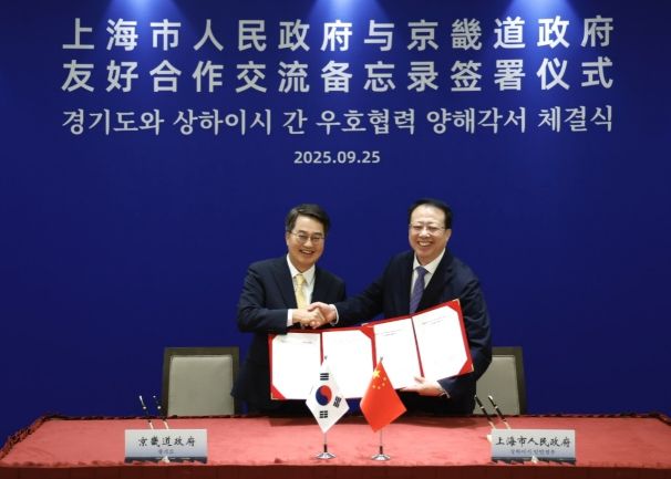김동연 경기도지사는 25일 궁정(龚正) 상하이 시장을 만나 우호 협력 업무협약(MOU)을 체결했다.
