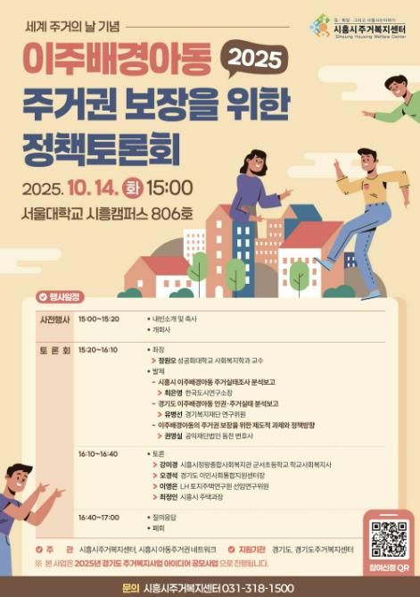 이번 토론회는 ‘세계 주거의 날’을 기념해 마련된 자리로, 지역사회 주거복지 과제 중 하나인 이주배경 아동의 주거권 보장을 위한 실태 공유와 정책적 대안 모색을 목표로 한다. 행사는 시흥시주거복지센터와 시흥시 아동주거권 네트워크가 공동 주관하고, 경기도와 경기도주거복지센터가 지원하는 ‘2025년 경기도 주거복지 아이디어 공모사업’의 일환으로 진행된다.