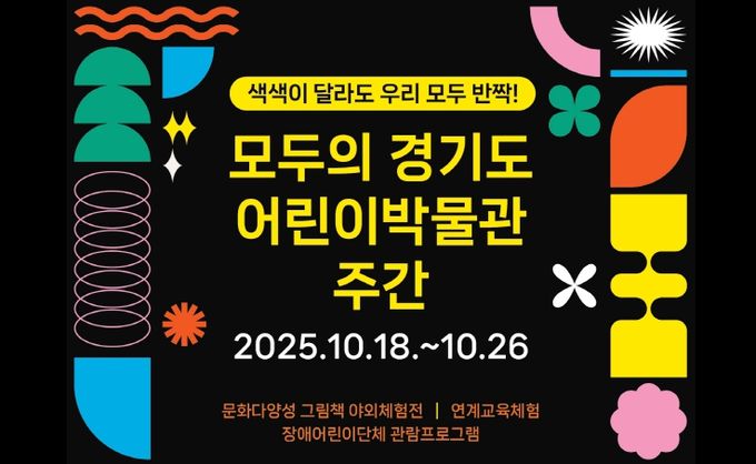 [경기경제신문] 경기문화재단 경기도어린이박물관(관장 박균수)은 오는 10월 18일부터 10월 26일까지 문화다양성 행사 〈색색이 달라도 우리 모두 반짝! 모두의 경기도어린이박물관 주간〉을 운영한다. 본 행사는 《문화다양성 그림책 야외체험전》, 유아 및 초등 어린이를 위한 연계프로그램, 장애어린이단체 맞춤형으로 개발된 접근성 콘텐츠를 활용한 관람프로그램 시범운영 등 총 3종으로 구성되어 다양한 모습의 관람객을 만나게 된다.