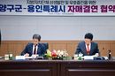 [경기경제신문] 용인특례시는 6일 강원특별자치도 양구군과 자매결연을 하고, 두 도시의 교류와 발전을 위해 적극 협력하기로 했다. 이상일 시장은 이날 양구군청 중회의실에서 서흥원 군수와 두 도시 간 우의를 증진하고 상호 교류‧협력하는 데 합의하고, 자매결연 협약서에 서명했다. 이번 협약으로 양구군은 시의 16번째 자매도시가 됐다. 이상일 시장은 “양구는 문화예술 분야에서 과감한 투자를 하고 있고, 양구군립박수근미술관은 2023년 양구 출신 박수근 화백의 1956년 작품 ‘가족’을 품었는데 두 도시가 앞으로 가족처럼 잘 지냈으면 한다”며 “이번 협약을 계기로 양 도시가 협력을 강화해서 함께 발전하길 기원한다”고 말했다. 이 시장은 “양구군과 용인시의 훌륭한 농산물들이 양 도시에서 소비하도록 서로 홍보하는 등 협조 체계를 갖추는 노력도 기울이자"라며 "양구에는 테니스장, 축구장 등 스포츠 시설이 아주 잘 갖춰져 있는 만큼 용인의 스포츠팀이나 단체들이 양구를 찾아 훈련하는 등 체육 분야의 협력도 도모하면 좋겠다"고 했다. 서흥원 군수는 “용인의 인프라와 비전이 대한민국 지방자치단체 중에서 가장 선도적 역할을 하고 있다는 생각을 하며, 이번 협약을 계기로 용인과 양구가 형제 이상의 관계를 갖길 바란다”며 “시민과 군민이 자랑스러워하는 용인과 양구가 될 수 있도록 손을 맞잡겠다”고 했다. 자매결연 협약식 후 이 시장은 ‘박수근미술관’ 등을 시찰하며 두 도시 간 교류·협력 방안 등을 논의했다. 시는 자매 결연을 계기로 양구군과 두 도시의 공동 발전을 위해 행정·문화·관광·경제·체육 등 각 분야에서 교류‧협력하기로 했다. 행정·자치 분야에서 시는 주민자치 활성화를 위해 두 도시는 우수 정책 사례를 공유하고, 주민자치위원회와 직장동아리간 교류를 추진할 예정이다. 문화·관광 분야에서는 두 도시의 주요 축제와 관광지를 홍보하고, 지역 축제 개최 시 홍보 부스를 설치하는 등 홍보‧협력을 추진한다. 두 도시의 문화 교류를 위해 지역문화단체 사이의 교류 등도 추진한다. 경제·체육 분야에서는 지역 축제 개최 시 팝업스토어(반짝 매장)를 개설하는 등 방법으로 두 도시의 농산물과 특산물을 판매‧홍보하고, 생활체육 교류 등도 모색하기로 했다. 시는 양구군을 포함해 진도군, 영천시, 제주시, 완도군, 사천시, 고성군, 함평군, 속초시, 단양군, 전주시, 광양시, 안동시, 괴산군, 울릉군, 화순군 등 국내 16개 도시와 자매결연했고, 포항시와는 우호도시 교류 협약을 체결했다. 또 미국 윌리엄슨카운티와 페어펙스카운티, 스페인 세비야시, 베트남 다낭시 등 해외 13개 도시와 자매‧우호 도시 관계를 맺고 있다.
