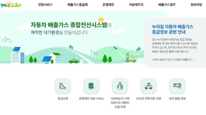 자동차 배출가스 등급은 자동차 배출가스 누리집에서 확인할 수 있으며, ‘조기 폐차’ 신청은 자동차 배출가스 누리집에서 ‘저공해 조치’를 신청하거나 한국자동차환경협회로 이메일 또는 등기우편으로 접수하면 된다.