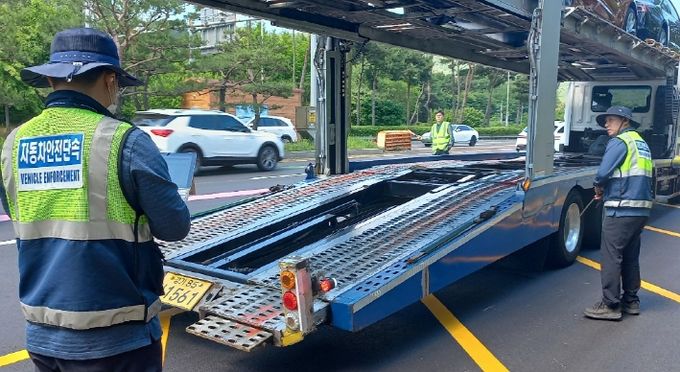 [경기경제신문] 수원시가 3일 호매실나들목 인근에서 수원서부경찰서, 한국교통안전공단 경기남부본부와 상반기 불법자동차 합동 단속을 했다.