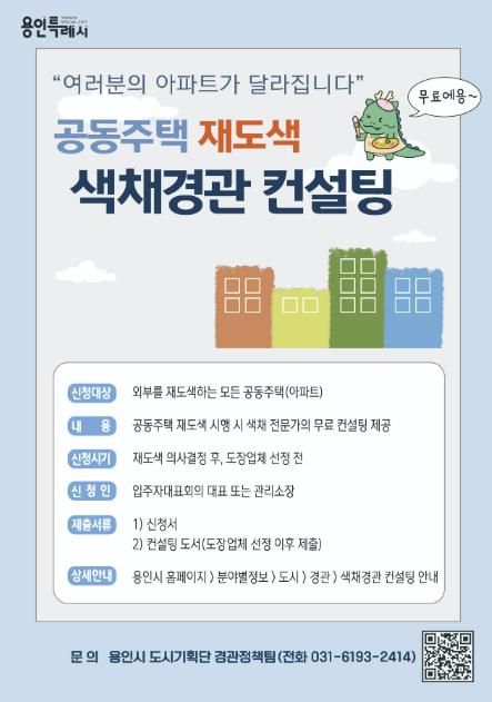 용인특례시, 재도색 앞둔 공동주택 대상 색채 경관 무료 컨설팅
