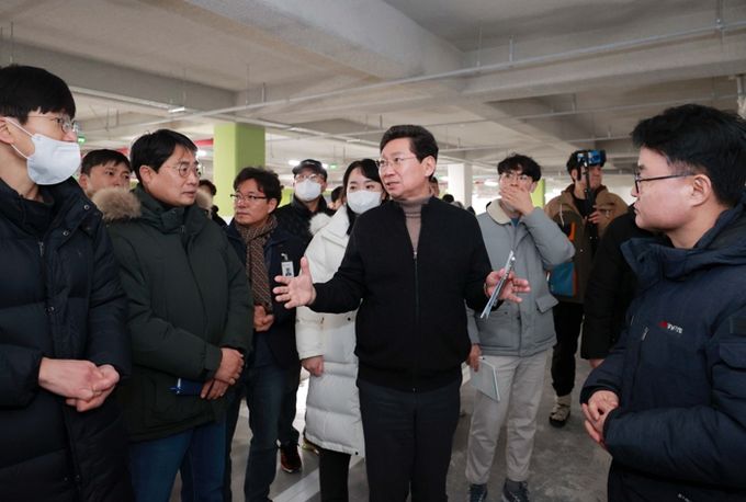 이 시장은 현장에 도착해 지난번 방문 때 안전점검을 실시키로 했던 단지의 지하 2층 주차장을 찾았다. 이 시장은 “누수 문제를 근원적으로 해결하기 위해 경남기업 측과 입주예정자 측에서 각각 추천하는 업체가 함께 점검하기로 했으니 안전점검을 서둘러서 누수 문제를 완벽하게 해결해 달라”고 말했다.