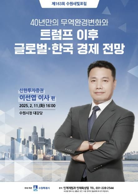 [경기경제신문] 투자전략전문가인 신한투자증권 이선엽 이사가 2월 11일 오후 4시 시청 대강당에서 열리는 제163회 수원새빛포럼 강사로 나선다.