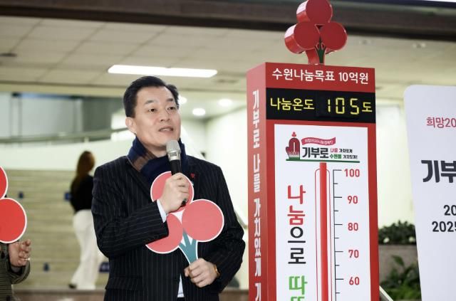 수원시 지난해 12월 10일 시청 본관 로비에서 ‘사랑의 온도탑’ 제막식을 열고, ‘희망 2025 나눔캠페인’을 시작했다. 사랑의 온도탑은 0℃에서 시작해 1000만 원이 모금될 때마다 1℃씩 상승하는데, 올해는 10억 5000만 원을 모금해 눈금이 105℃(10억 5000만 원)까지 올라갔다.
