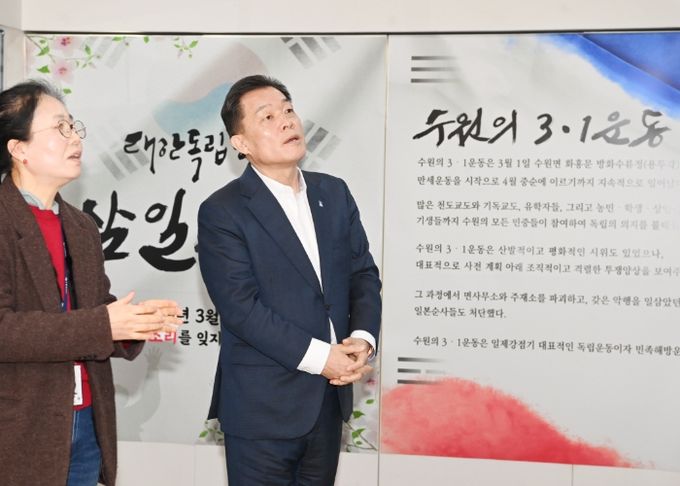 이재준 수원시장은 26일 전시장을 찾아 전시물을 관람하고, “수원의 독립운동가를 시민들에게 널리 알리길 바란다”고 말했다.