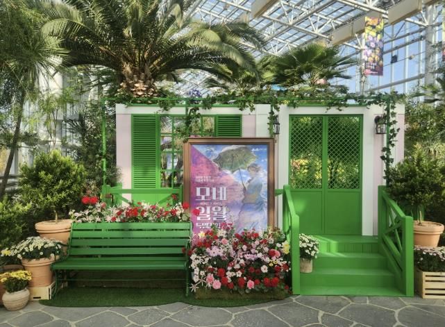 전시온실 입구에는 모네가 프랑스의 지베르니 마을에서 43년을 거주했던 집과 정원을 바탕으로 한 포토존이 마련된다. 2층 광장에는 모네의 정원이 보이는 작업실, 2층 회랑에는 집 현관 밖 정원 풍경이 구현된다.