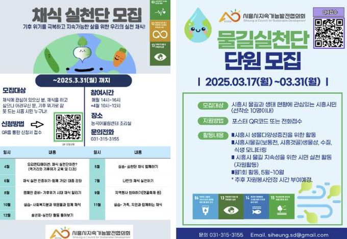 [경기경제신문] 시흥시지속가능발전협의회는 ‘채식실천단’과 ‘물길실천단’ 활동에 참여할 단원을 모집한다. 신청 기한은 3월 31일까지이며, 시흥시민 누구나 참여할 수 있다.