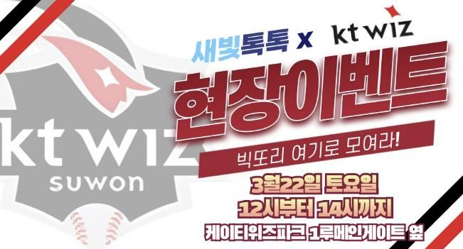 KT 위즈와 한화 이글스의 개막전을 앞두고, 정오부터 오후 2시까지 수원시 공식캐릭터 수원이와 함께 새빛톡톡 가입과 이벤트 참여를 유도할 예정이다.