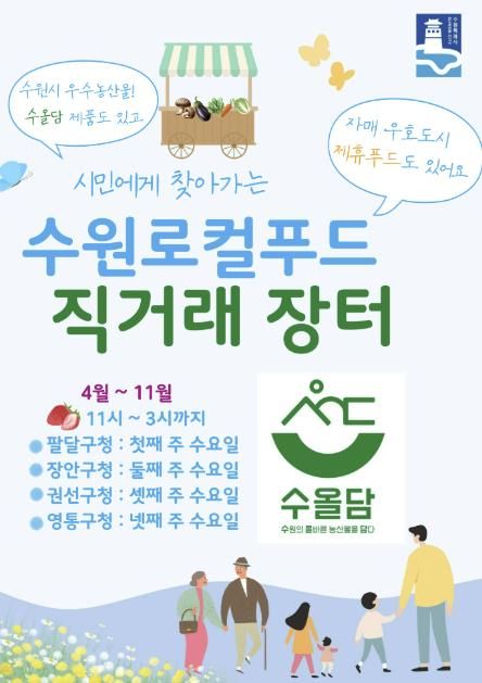 수원시는 시민들이 더 쉽게 ‘수원로컬푸드 직거래장터’를 이용하고, 판매 경로를 확대하기 위해 4개 구청에서 직거래장터를 운영한다.