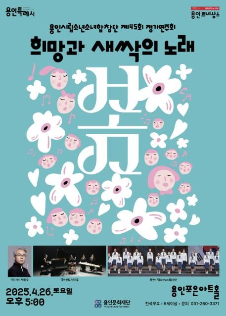 [경기경제신문] 용인문화재단은 오는 4월 26일 용인포은아트홀에서 용인시립소년소녀합창단 제45회 정기연주회 '희망과 새싹의 노래 “봄”'을 개최한다고 밝혔다.