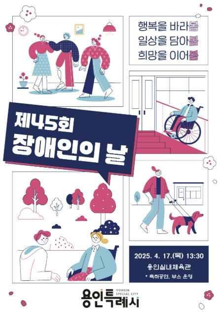 [경기경제신문] 용인특례시는 17일 오후 1시 30분부터 처인구에 위치한 용인실내체육관에서 제45회 장애인의 날 기념행사를 개최한다고 밝혔다.