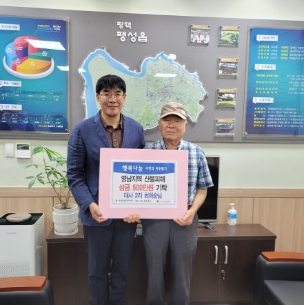 이에 대해 이근영 팽성읍장은 “이번 기부는 갑작스러운 재해로 삶의 어려움을 겪고 있는 이재민들에게 큰 위로와 용기를 주는 뜻깊은 나눔”이라며 “소중한 성금이 꼭 필요한 분들에게 신속하고 정확하게 전달될 수 있도록 최선을 다하겠다”고 감사를 전했다.