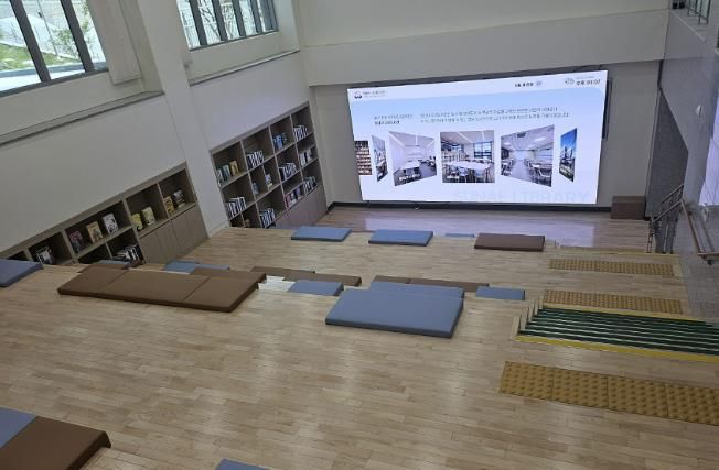 지하 2층엔 대형전광판(미디어월)이 있는 계단형 독서 뜰, 68대 주차 규모 주차장이 설치됐다.