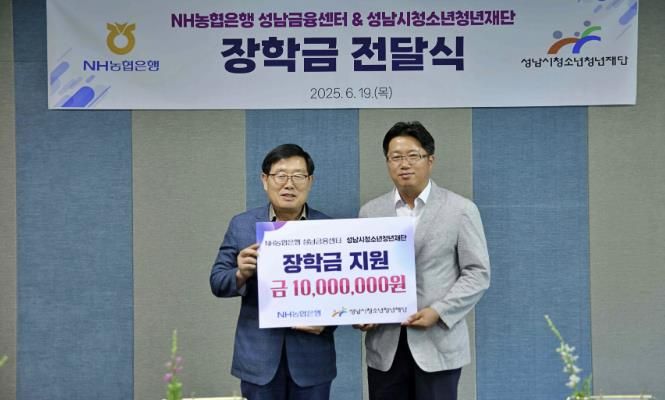 [경기경제신문] 성남시청소년청년재단은 6월 19일, NH농협은행 성남금융센터의 후원으로 성남시 취약계층 청소년을 위한 장학금 전달식을 개최했다고 밝혔다.