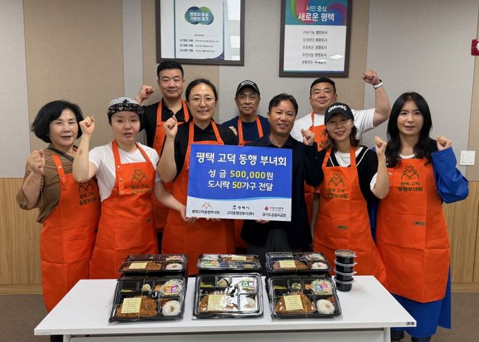 [경기경제신문] 평택시 고덕 동행 부녀회에서는 지난 20일 도시락 50개(50만 원 상당)와 성금 50만 원을 고덕동 행정복지센터에 전달했다.