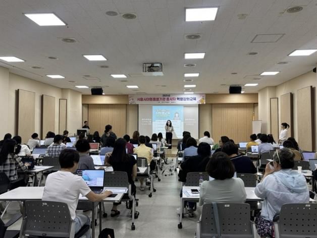 ‘돌봄 현장에 바로 쓰는 인공지능 활용 교육’이라는 주제로 진행된 이번 교육에는 지역아동센터 34곳, 아이누리 돌봄센터 25곳, 학교돌봄터 3곳 등 총 62곳 아동돌봄기관에서 70여 명의 종사자가 참여해 높은 관심을 보였다.