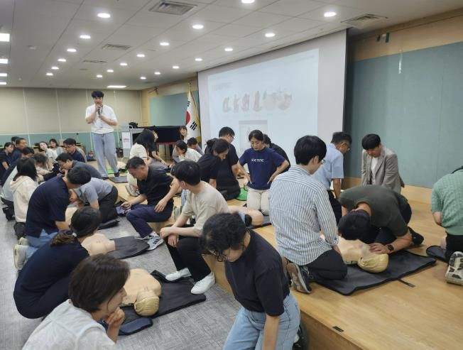 이론교육은 시청각 자료를 활용해 응급처치의 중요성과 기본개념, 행동요령을 설명했고, 실습교육은 마네킹을 활용해 심폐소생술을 체험하는 시간으로 이뤄졌다.