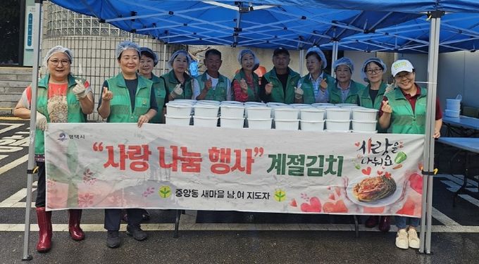 [경기경제신문] 평택시 중앙동 새마을남녀회는 지난 25일 중앙동 행정복지센터 앞마당에서 ‘사랑나눔 물김치 담기 및 나눔’ 행사를 진행했다고 밝혔다.