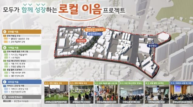 시는 마북동 304번지 일원에 ▲유휴공간과 지역자원을 활용하여 생활밀착형 문화거점을 조성하는 ‘문화를 이음’ ▲타운 매니지먼트 기반의 지역관리 실험과 협력체계를 구축하기 위한 ‘지역을 이음’ ▲거버넌스 운영과 사업 통합 지원 체계를 마련하기 위한 ‘모두를 이음’이라는 주제로 사업을 추진할 계획이다.