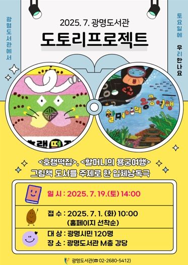 [경기경제신문] 광명시 광명도서관은 오는 7월 19일 도토리 프로젝트의 일환으로 ‘호랭떡집·할머니의 용궁여행’ 그림책을 주제로 한 입체 낭독극을 개최한다.