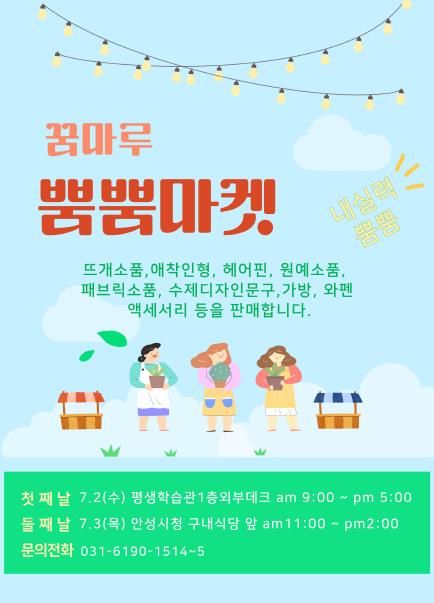 [경기경제신문] 안성시는 (예비)여성창업자들의 실전 창업을 지원하고 창업 역량 강화를 위하여 '꿈마루 뿜뿜마켓'을 개최한다고 밝혔다.