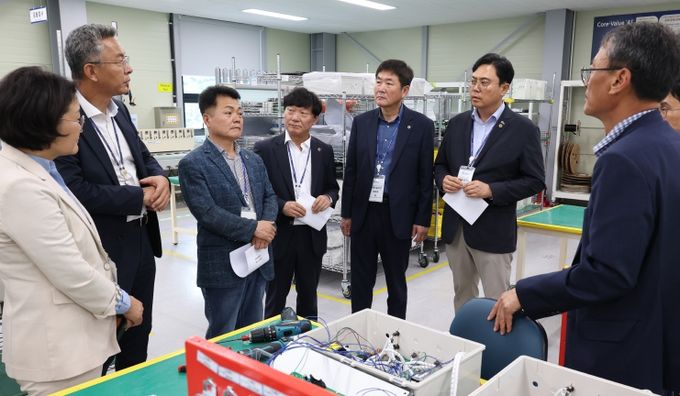 [경기경제신문] 경기도의회 교섭단체 더불어민주당 대표단이 2일 용인시 남사읍에 위치한 반도체 및 디스플레이 부품 제조기업 ㈜제이솔루션을 방문하여 반도체 산업 경쟁력 강화 방안을 모색했다.
