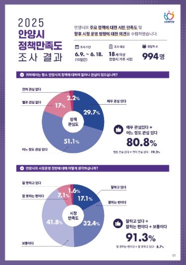안양시, 민선 8기 3주년 맞아 정책만족도 조사 실시