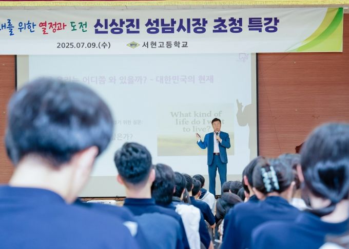 [경기경제신문] 신상진 성남시장은 7월 9일 오후 3시 분당구 서현동 서현고등학교 체육관에서 진로 특강을 했다.