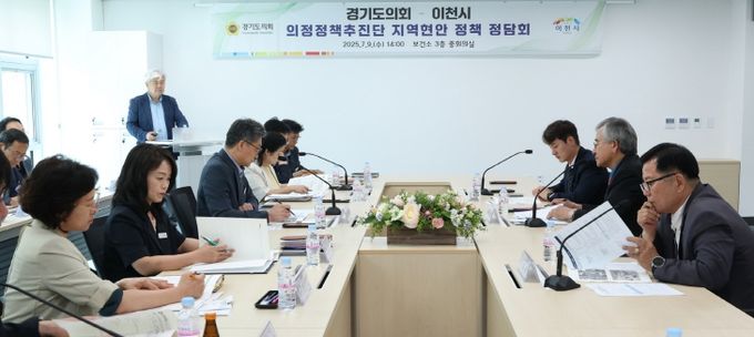 [경기경제신문] 경기도의회 의정정책추진단은 9일 이천시 회의실에서 ‘지역 현안 정책 정담회’를 열고 이천지역의 주요 정책 현안과 경기도의회 차원의 지원방안을 논의했다.