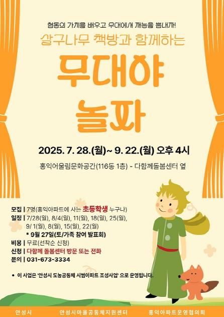 더불어 다가오는 9월에는 홍익아파트 일대와 살구나무책방에서 '마을 축제'가 열린다. 농산물 직거래장터의 풍성함은 물론, 그동안 갈고닦은 공동체 활성화 사업의 결실을 함께 나누는 자리이다. 실버정원사들이 직접 가꾼 정원을 자랑하고, 어린이들은 10주간의 연습 끝에 무대에 오르는 연극을 선보이며 꿈을 펼칠 예정이다. 홍익아파트 관리소와 운영협의회가 주도하고, 주민들의 소중한 의견을 모아 축제의 이름과 콘셉트도 정해 주민이 만드는 주민 잔치의 성공을 기대하게 한다.