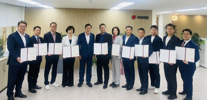 이날 백현종 대표의원(구리1)을 비롯해 이용호 총괄수석부대표(비례), 이한국 수석 정책위원장(파주4), 유영일 수석대변인(안양5), 이혜원 정무수석(양평2), 이석균 기획수석(남양주1), 이채영 정책수석(비례), 김현석 청년수석(과천), 김완규 경제수석(고양12), 유형진 교육수석(광주4), 임광현 문화수석(가평) 등 도의회 국민의힘 신임 대표단은 김선교 경기도당위원장으로부터 임명장을 받았다.
