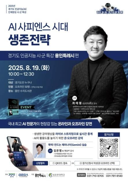 [경기경제신문] 용인특례시는 경기도경제과학진흥원이 주최하는 ‘2025년 인공지능(AI)시·군 특강’이 8월 19일 수지구 도서관에서 열린다고 25일 밝혔다.