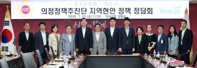 [경기경제신문] 경기도의회 의정정책추진단은 25일 양주시 회의실에서 ‘지역 현안 정책 정담회’를 열고 양주지역의 주요 정책 현안과 경기도의회 차원의 지원방안을 논의했다.