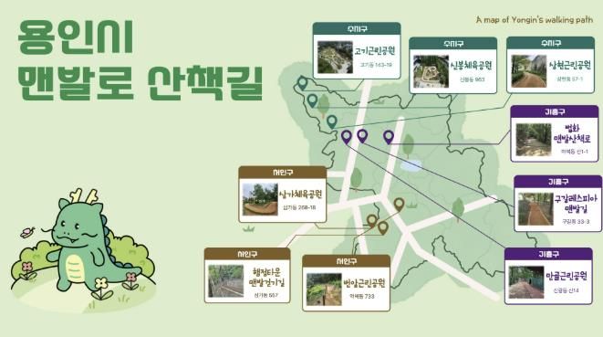 이번 ‘맨발로 산책길’ 추가는 ‘걸어용’ 앱 이용자들의 요청에 따른 것이다. 시는 앱 사용자들이 방문할 수 있도록 처인·기흥·수지구에 각각 3개의 맨발길을 추가했다. 이 곳에서 산책을 완료하면 20포인트의 시티포인트를 받을 수 있다.
