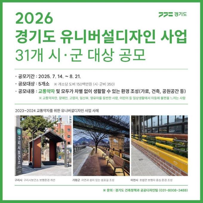 강길순 경기도 건축정책과장은 “도시환경디자인사업 적극 추진을 통해 도민 삶의 질을 향상시키고 취약지역 내 환경개선을 통해 범죄로부터 안전한 주거환경을 만들어 나가겠다”라고 말했다.