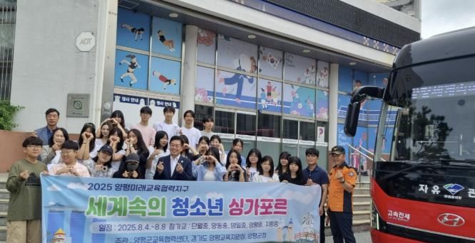 [경기경제신문] 양평군 교육협력센터는 4일 오전 10시 30분 물맑은양평체육관 앞에서 모여, 관내 5개 중학교에서 선발된 동아리 청소년 20명이 ‘세계 속의 청소년’ 글로벌 프로젝트 수행을 위해 싱가포르로 출국한다고 밝혔다. 이번 해외 프로그램은 8월 4일부터 8일까지 5일간 진행된다.