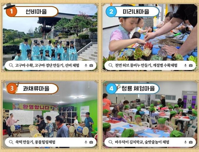 이번 하절기 성수기에는 고구마 수확, 허브 비누 만들기, 김치 담그기, 전통 놀이 체험 등 체험과 교육이 어우러진 프로그램들이 주축을 이루며 가족 단위 방문객은 물론 아동·청소년, 농촌문화에 관심 있는 일반인에게 풍부한 농촌 체험 기회를 제공한다.