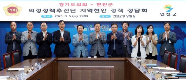 [경기경제신문] 경기도의회 의정정책추진단은 6일 연천군 회의실에서 ‘지역 현안 정책 정담회’를 열고 연천지역의 주요 정책 현안과 경기도의회 차원의 지원방안을 논의했다.