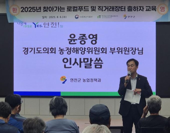 [경기경제신문] 경기도의회 농정해양위원회 부위원장이 윤종영 의원(국민의힘, 연천)이 6일 연천군 농업기술센터 대강당에서 열린 2025년 하반기 로컬푸드 납품농가 교육에 참석해 지역 농가들의 현장의견을 청취했다.