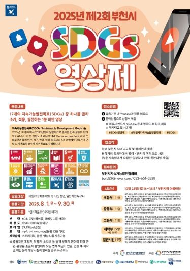 [경기경제신문] 부천시는 부천시지속가능발전협의회와 함께 지속가능발전 가치 확산과 시민 참여 활성화를 위해 ‘2025년 제2회 부천시 SDGs 영상제’를 열고, 시민의 창의적 시선과 실천 의지를 담은 출품작을 모집한다.