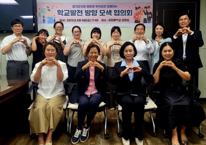 [경기경제신문] 경기도의회 정윤경 부의장(더불어민주당, 군포1)은 8월 8일, 금정중학교 교장실에서 교직원 및 학부모들과 함께 ‘학교 발전 방향 모색 협의회’에 참석해 학급 수 감소와 교내 시설 개선 등 주요 현안을 논의했다.